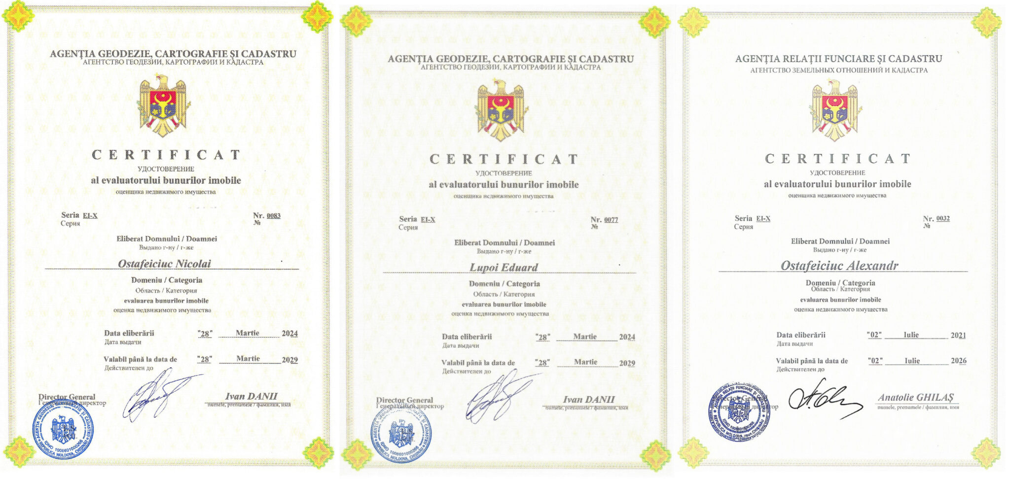 На данный момент в Молдове Оценочная деятельность не лицензируется, обязательным условием является Сертификат, подтверждающий квалификацию оценщика.